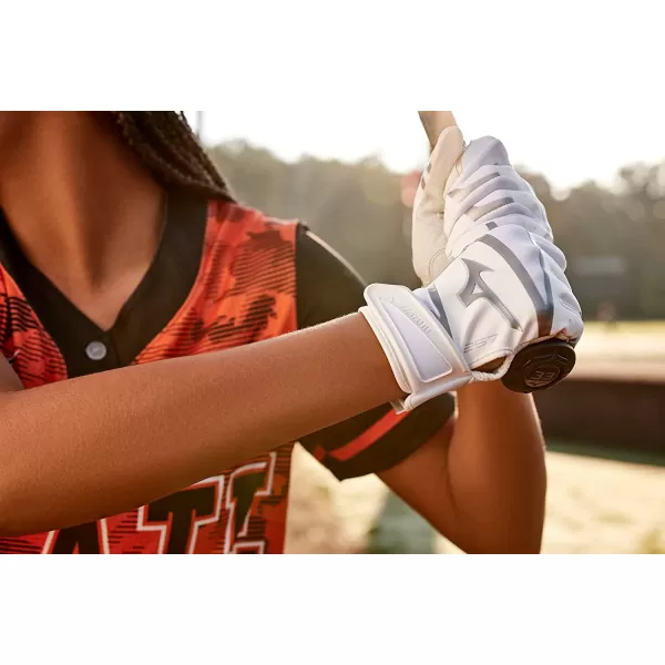 Gender-engineered specifically for softball players, the new F-257 batting glove is power-packed with premium features. Made with embossed full grain leather palm to give players a combination of a great feel with increased durability. Designed with Mizuno AirMesh for maximum flex and breathability. Our quick adjust wrist tab combined with a neoprene wristband for a secure fit and great feel.